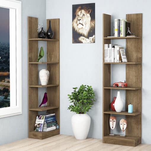 ארון ספריה מעוצב ייחודי ומרשים מוחלק לשני חלקים עם 5 מדפים בכל צד.  ניתן לחלק את הספרייה לשני או חלקים או להעמיד צמוד אחד ליד השני. הארון עשוי משבבית דחוסה בחיפוי מלמין איכותי בתקן אירופאי.