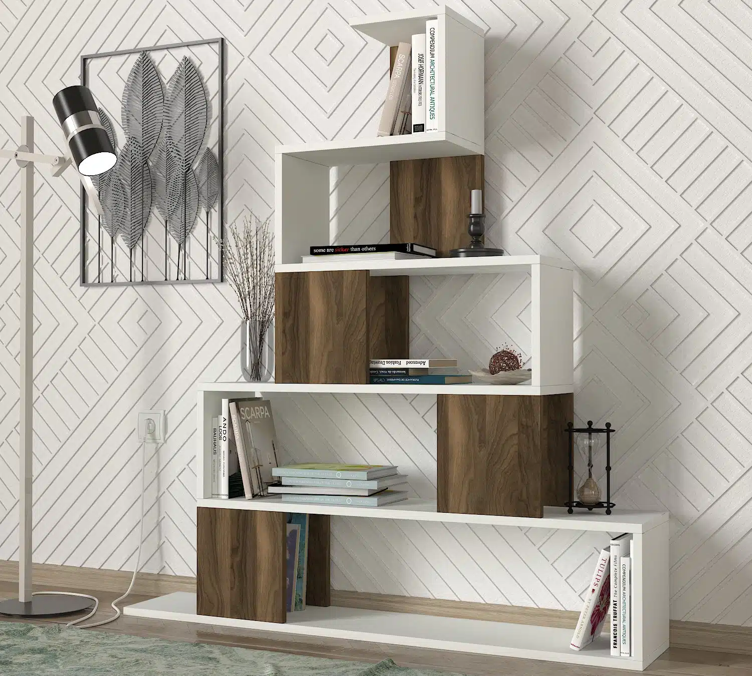 ארון המדפים המעוצב בצורת פירמידה הוא הפתרון המושלם עבורך! עיצובו הייחודי והמודרני יהפוך כל חדר לסלון תצוגה אישי.