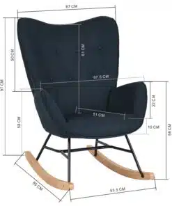 כורסא נדנדה לסלון מושלמת לצפייה בטלוויזיה לקריאה או הנקה. מרופדת היטב בבד איכותי עמיד ורחיץ וספוג בצפיפות גובה המבטיח עמידות ונוחות לאורך זמן וישיבה ממושכת, בסיס הכורסא עשוי ממתכת אל חלד משולב עם עץ מלא.