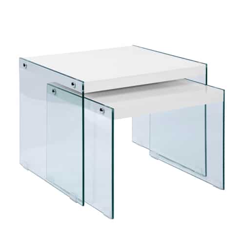 סט שולחנות מעוצבים במבצע בצבע לבן גלוסי עשויים מ- MDF איכותי בחיפוי מלמין , דפנות השולחן עשויות מזכוכית מחוסמת איכותית וחזקה.