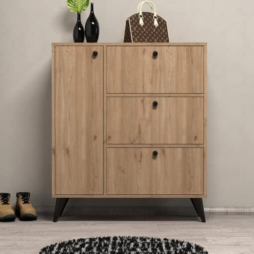 שידת האחסון המעוצבת שלנו בגוון אלון טבעי מציעה שילוב מושלם בין פונקציונליות מתקדמת ועיצוב מודרני עם נגיעה טבעית. עם ארבעה תאי אחסון גדולים ומרווחים, היא מספקת פתרון מסודר ואלגנטי לכל פריט בבית שלכם תוך הוספת חמימות ואופי טבעי למרחב.