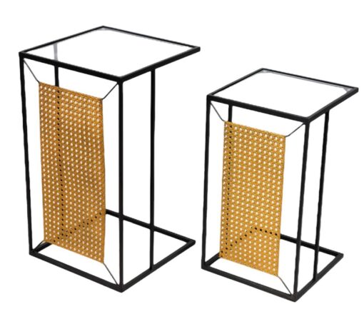סט שולחנות קפה עגולים ראטן ומתכת – עיצוב טבעי וכפרי