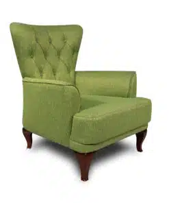 כורסא מעוצבת בסגנון קפיטונאז' כפתורים בבד ירוק תפוח