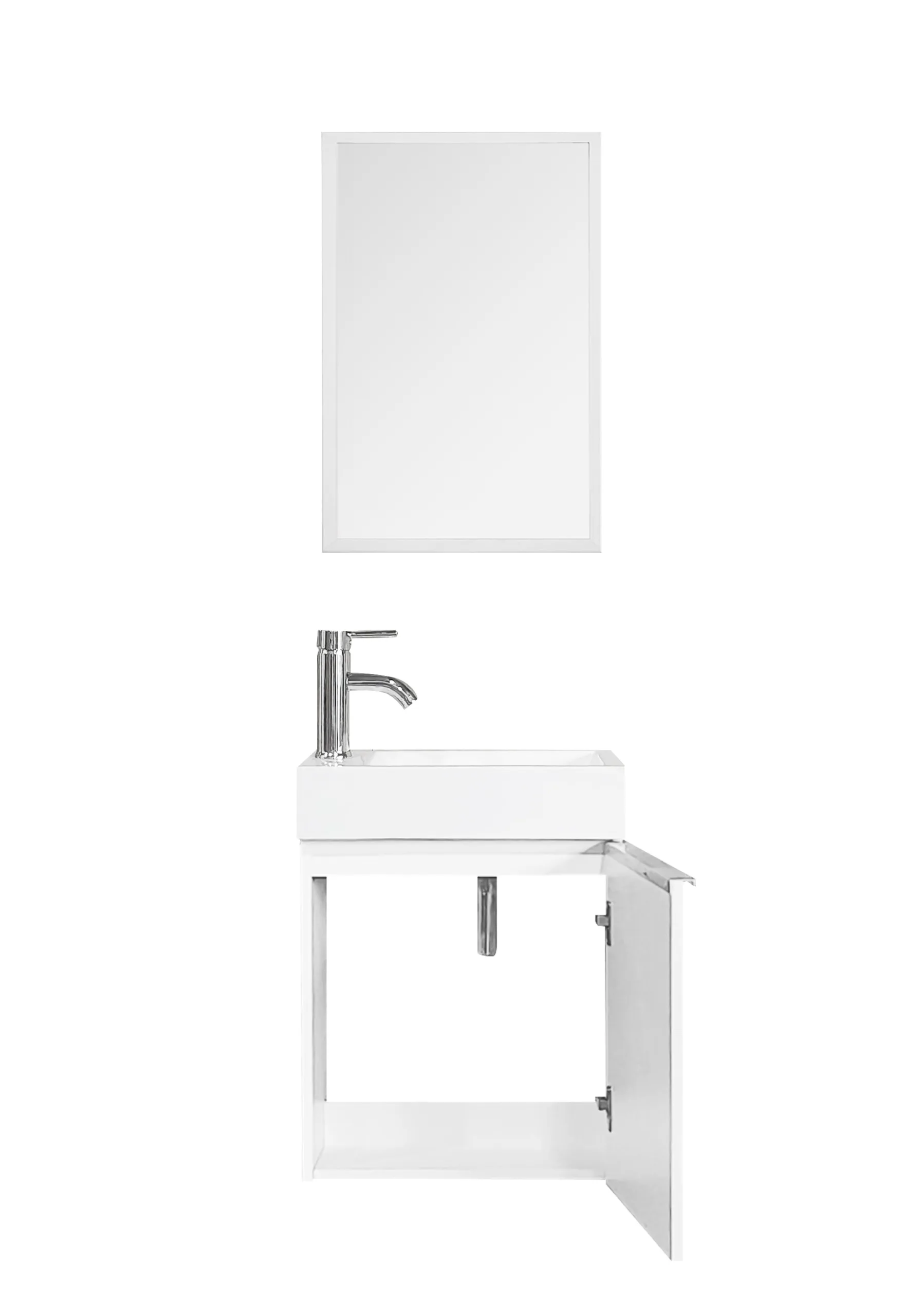 אביזרים כלולים: ארון, כיור חרס, מראה עם מסגרת אלומיניום, קיט הרכבה