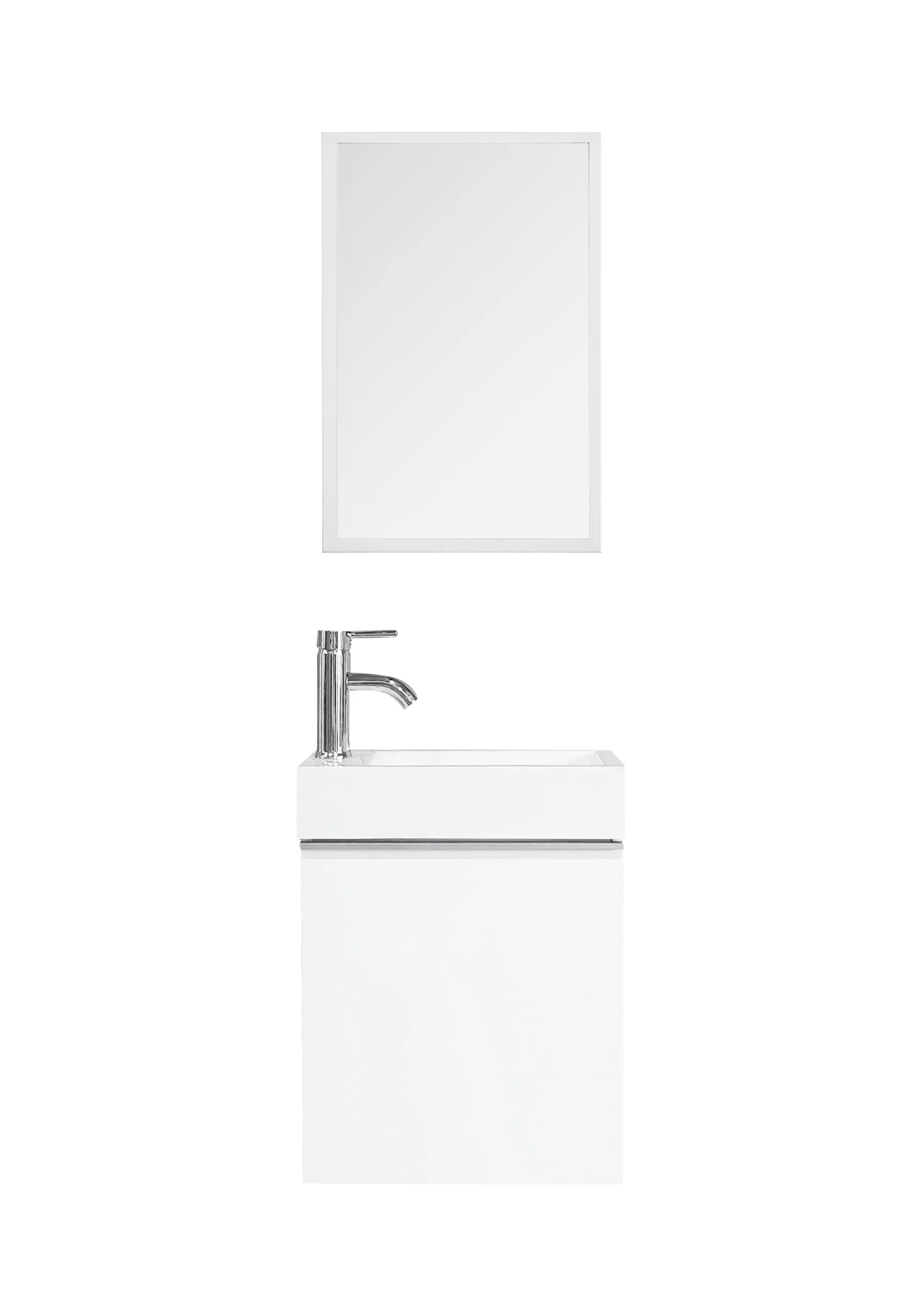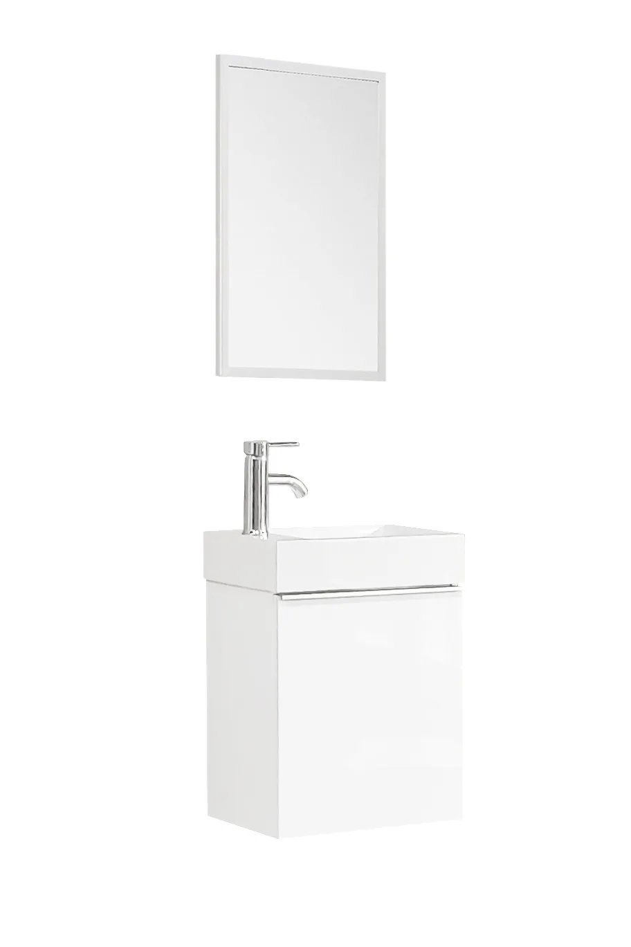 ארון אמבטיה קטן עם כיור ומראה מדגם "כלנית" מעניק מראה מודרני ונקי לכל חדר שירותי אורחים. הארונית הצפה מעוצבת ברוחב 45 ס"מ בלבד, מה שהופך אותה לאידיאלית עבור חללים צפופים הדורשים פונקציונליות ללא פשרות.