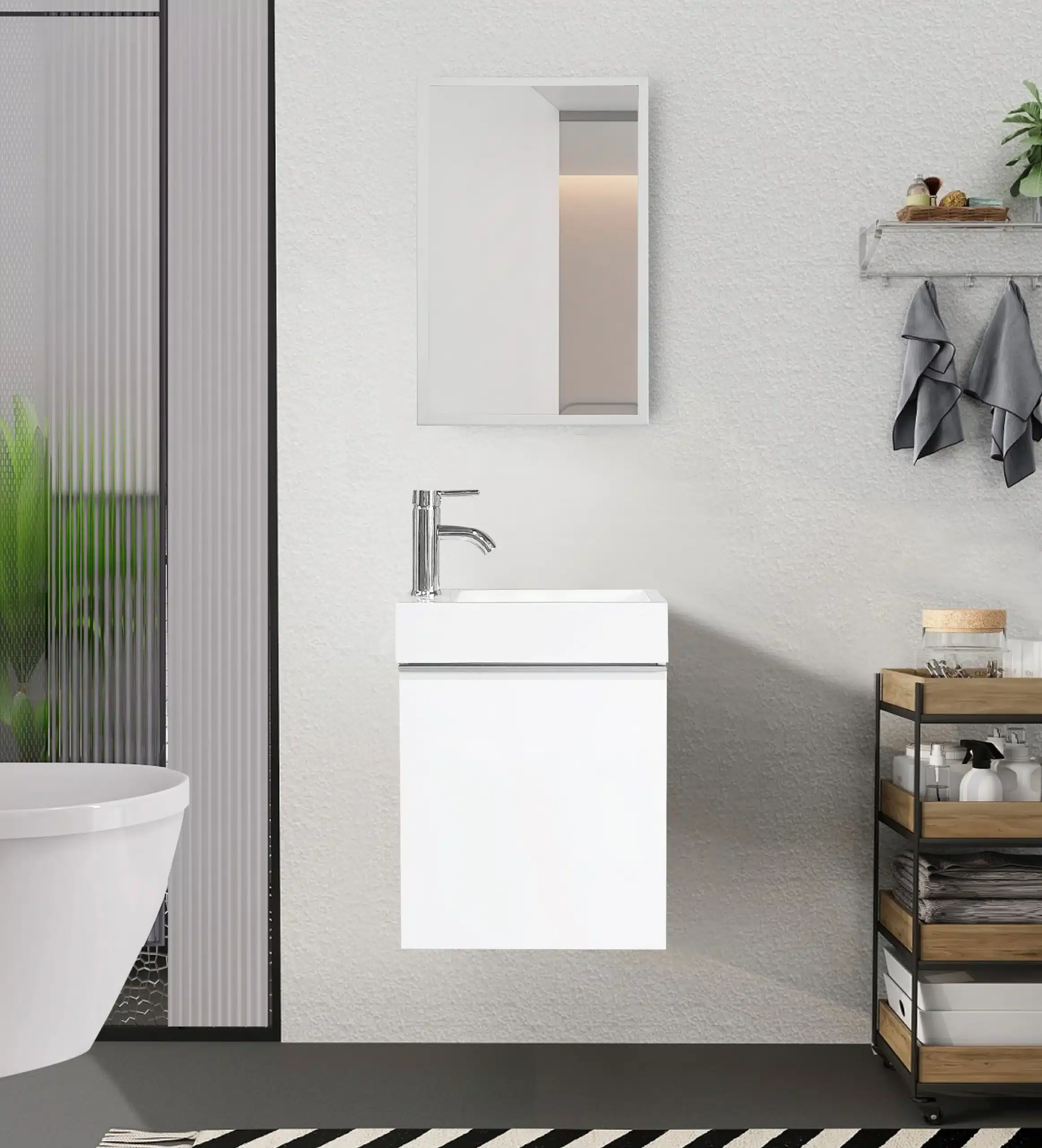 הארון אמבטיה קטן עם כיור ומראה הוא הפתרון המושלם לכל מי שמחפש לשדרג את חדר הרחצה הקטן או שירותי האורחים מבלי להעמיס על המרחב. שילוב בין עיצוב צף מודרני לבין מידות קומפקטיות מאפשר לכם ליהנות מחלל פתוח ומאוורר יותר, ומספק פתרון אחסון חכם לכל בית.