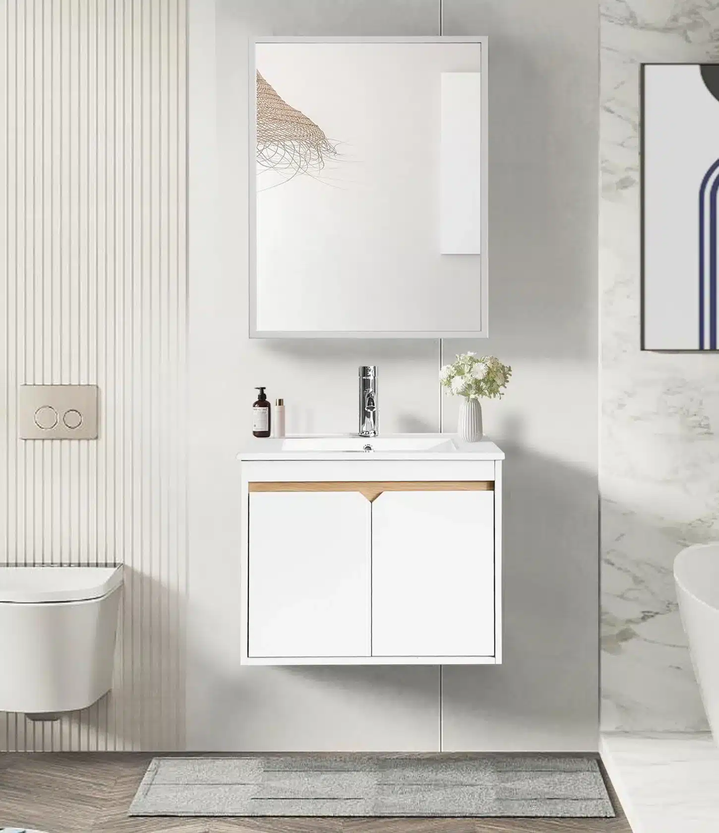 ארון אמבטיה צף מעוצב וכיור חרס איכותי לעיצוב מודרני