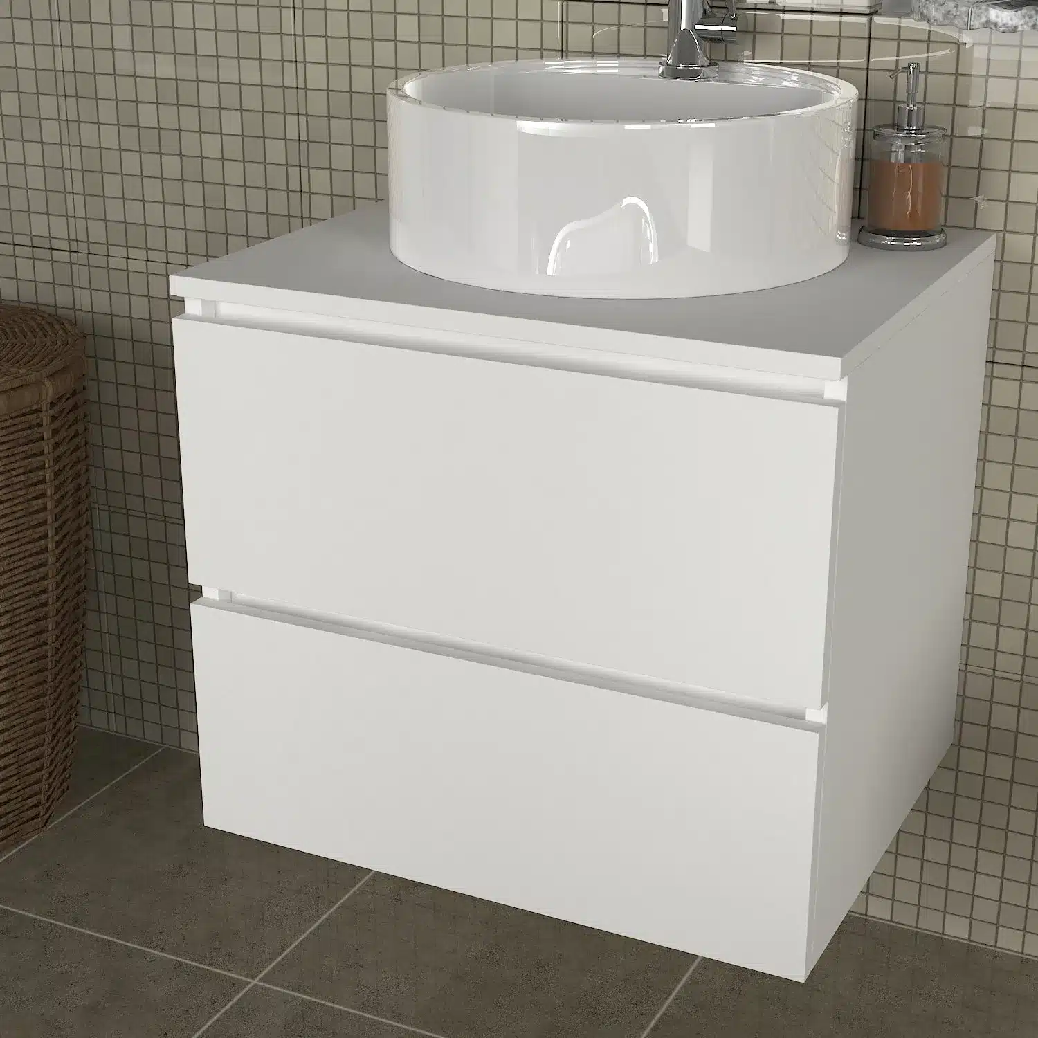 - שילוב עם כיור מעוצב: הארון בגוון הלבן הטהור משתלב בצורה מושלמת עם כיורים לבנים, שיש או בגוונים בהירים, ויוצר מראה אחיד, נקי ומסודר