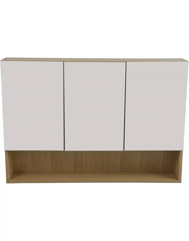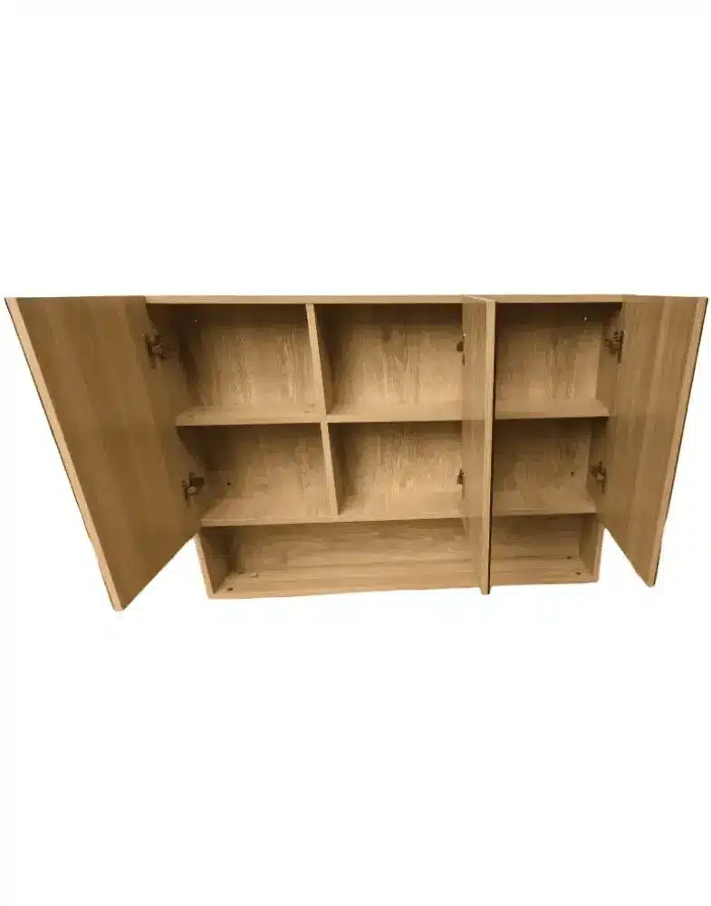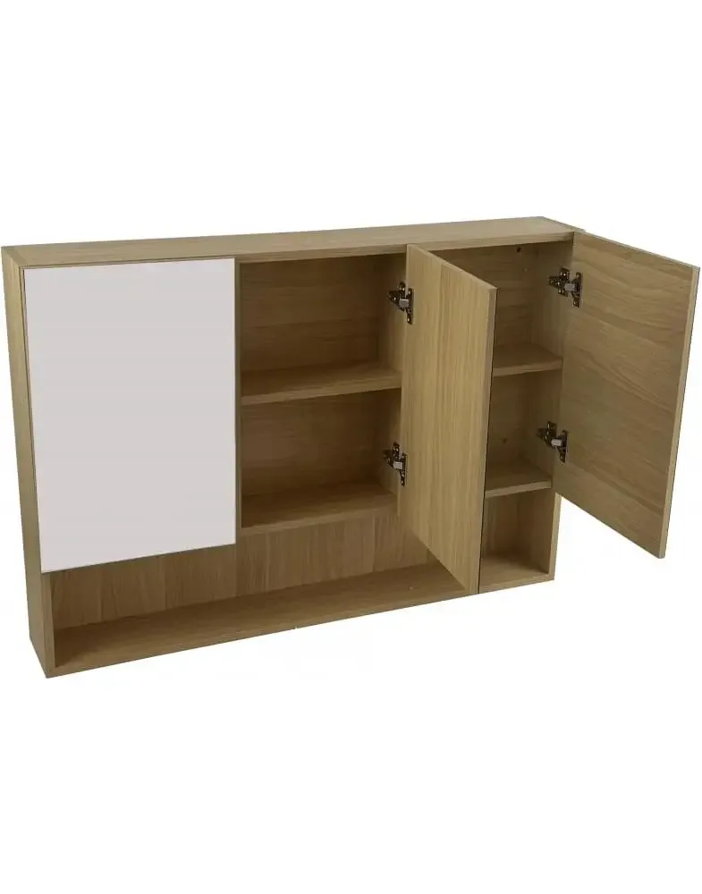 ארון אמבטיה תלוי המשלב עיצוב מודרני עם ניצול חכם של החלל. הארון כולל שלוש דלתות עם חזית מראה מלאה, המעניקה תחושת מרחב ומאפשרת התארגנות נוחה במיוחד.