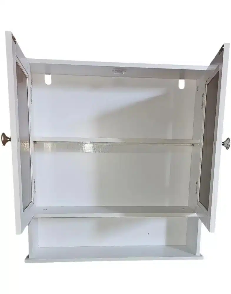 הארון מציע מידות מדויקות המותאמות לתלייה מעל הכיור או מעל משטח עבודה במטבח. עם רוחב של 56 ס"מ ועומק של 13 ס"מ בלבד, הוא אינו בולט מדי ומאפשר תנועה חופשית בחלל. מנגנון הדלתות מבטיח סגירה יציבה ושימוש עמיד לאורך זמן.