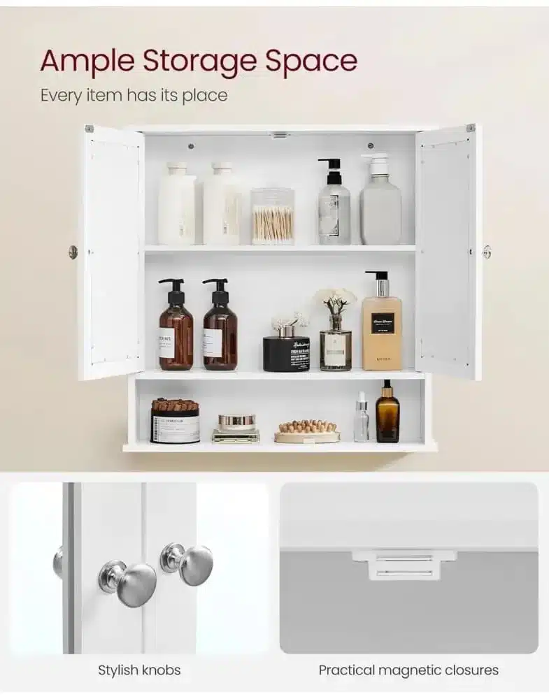 ✓ פונקציונליות כפולה – משלב ארון אחסון מרווח יחד עם מראות פנים גדולות במוצר אחד.