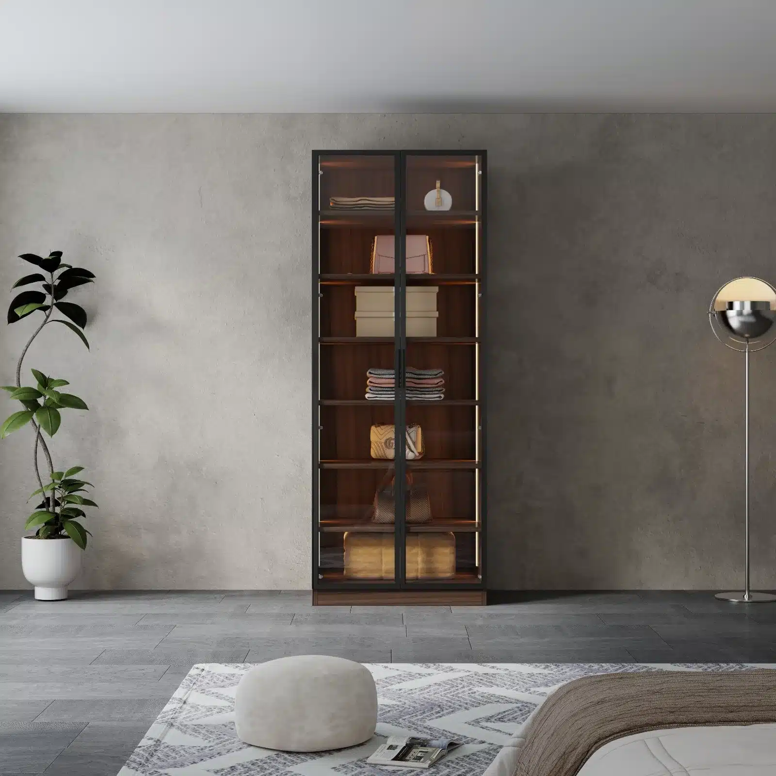 ארון בגדים 2 דלתות זכוכית זמין בגוון חום כהה יוקרתי המתאים לכל סגנון עיצוב מודרני: