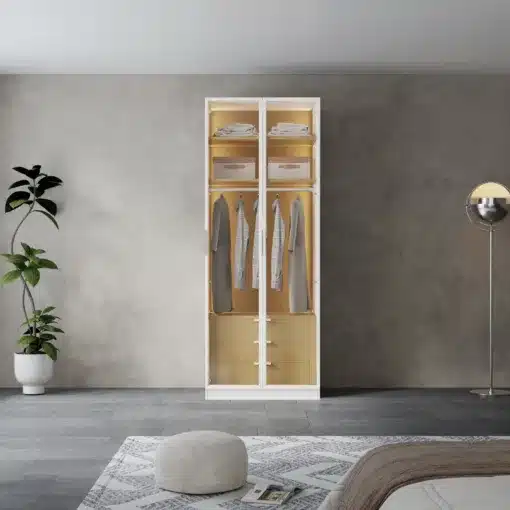 ארון בגדים 2 דלתות זכוכית עם תאורת LED – עיצוב יוקרתי לחדר השינה