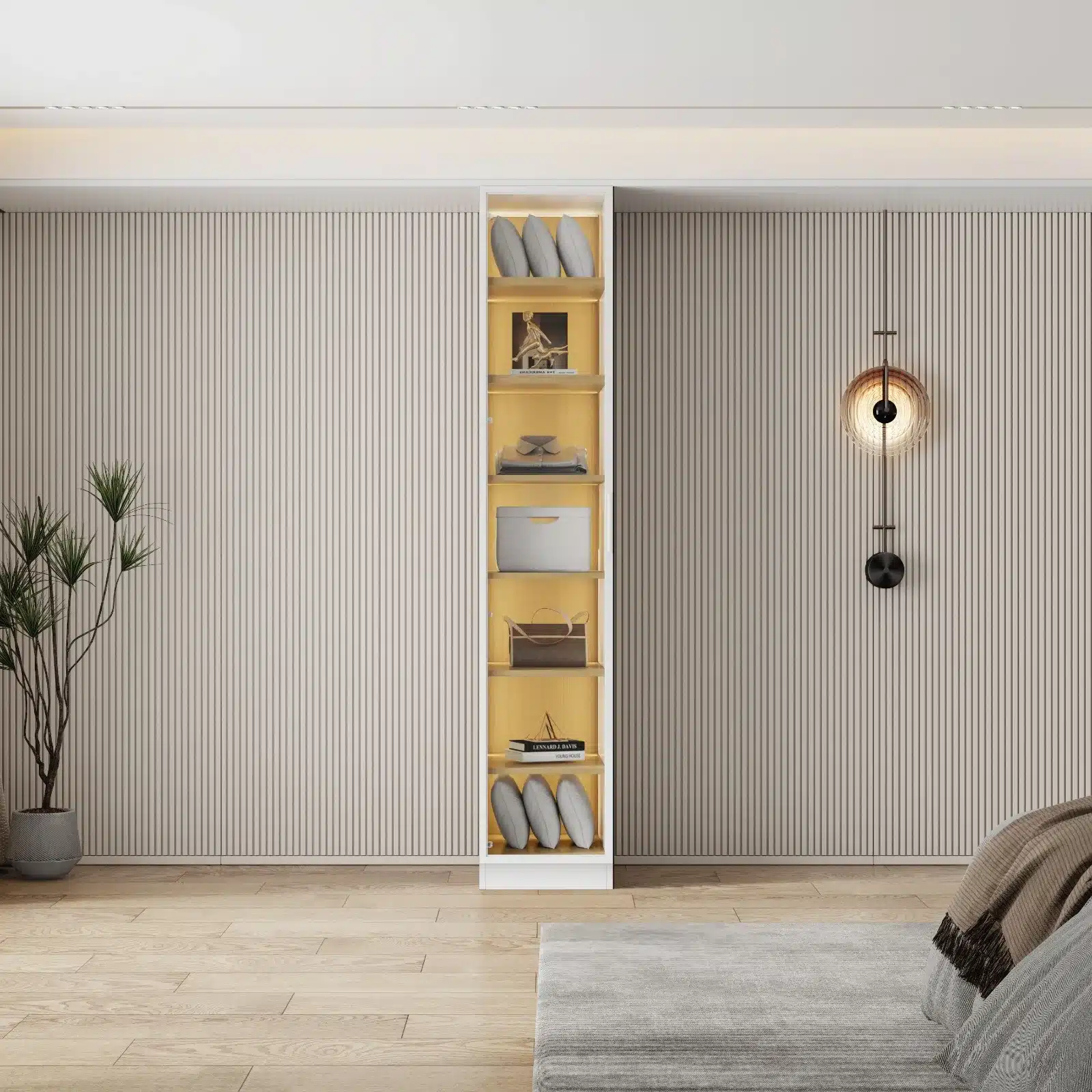 - חדר ארונות: ניתן לשלב מספר יחידות ליצירת קיר ארונות מרשים ומואר