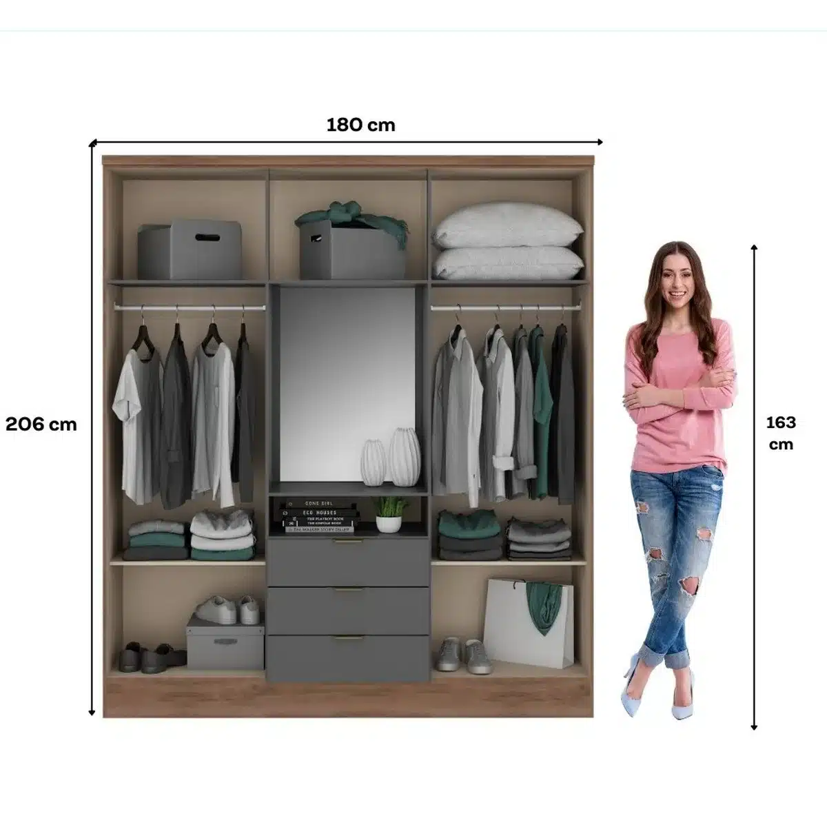✓ מתאים לחדרי שינה מגוונים – רוחב של 180 ס"מ מספק מספיק מקום לזוגות, משפחות או אנשים עם הרבה בגדים. החלוקה החכמה מאפשרת ארגון נוח והגיוני של כל סוגי הפריטים