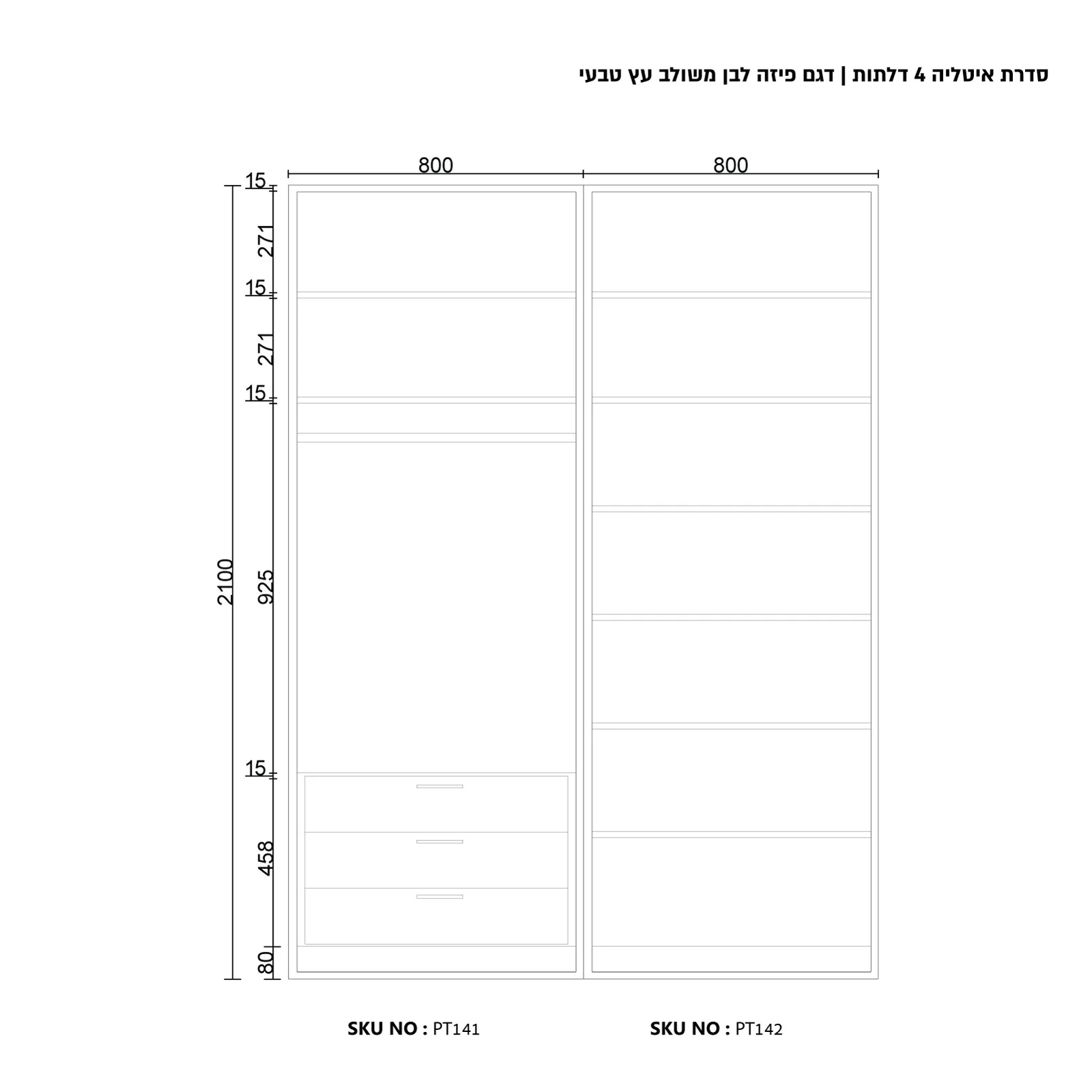מידות: גובה 210 ס"מ | רוחב 160 ס"מ | עומק 60 ס"מ