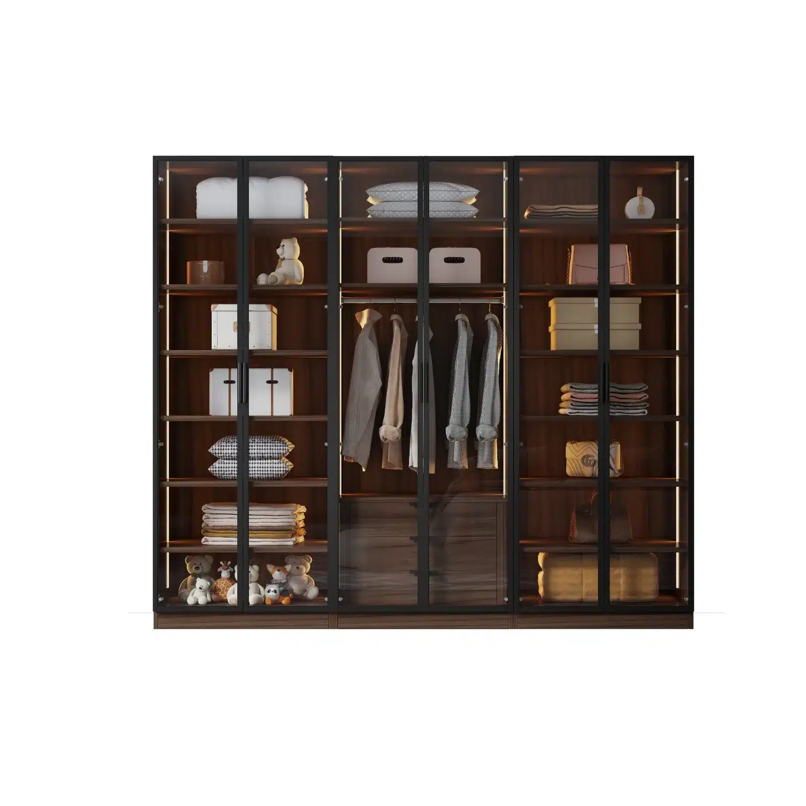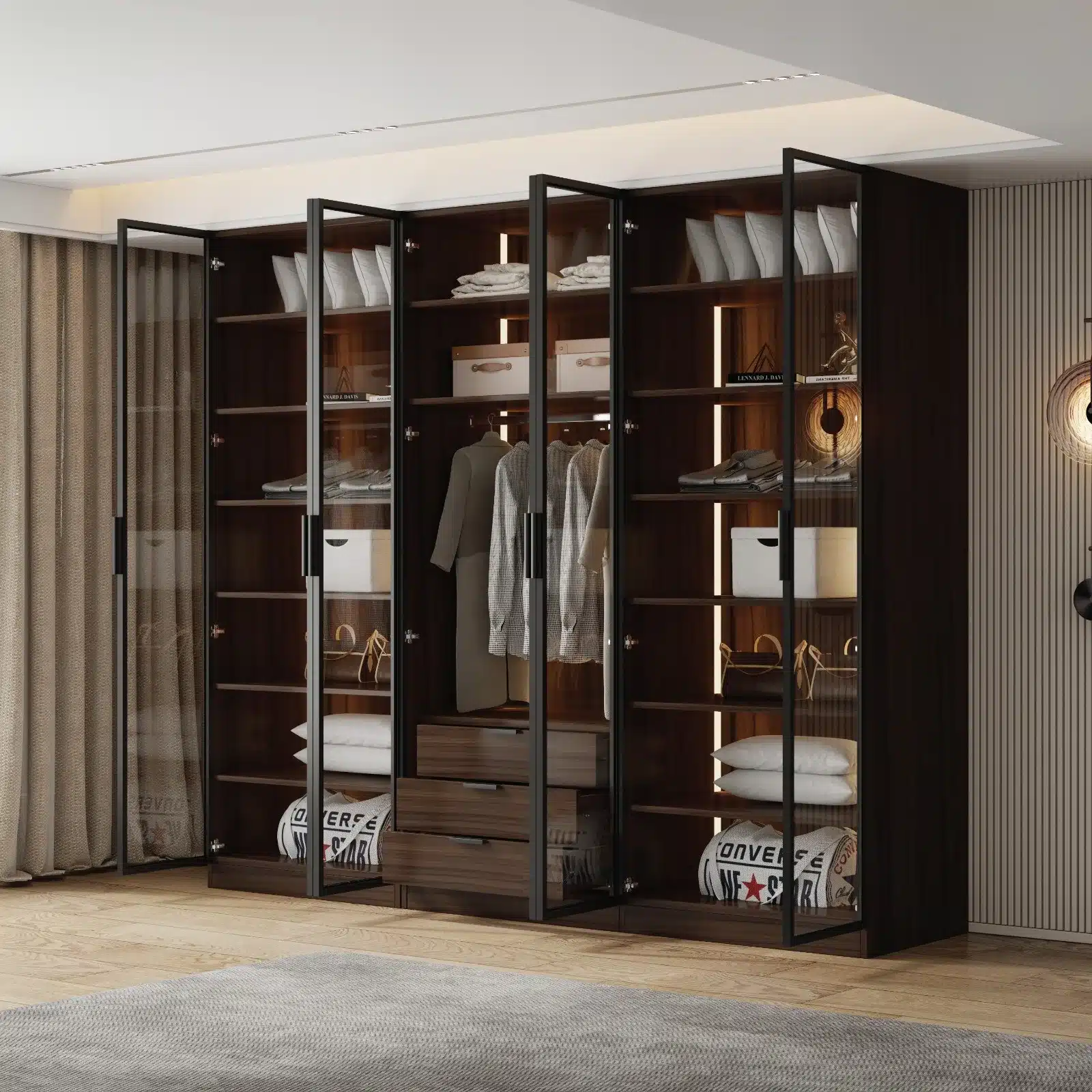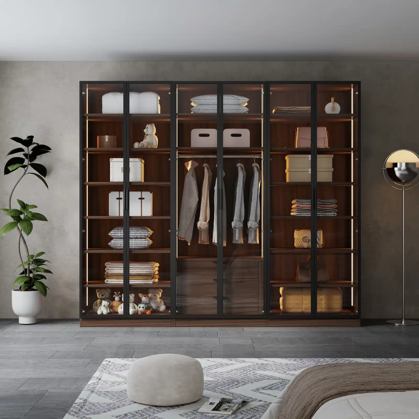 ארון בגדים 6 דלתות זכוכית זמין בגוון חום כהה יוקרתי המתאים לכל סגנון עיצוב מודרני: