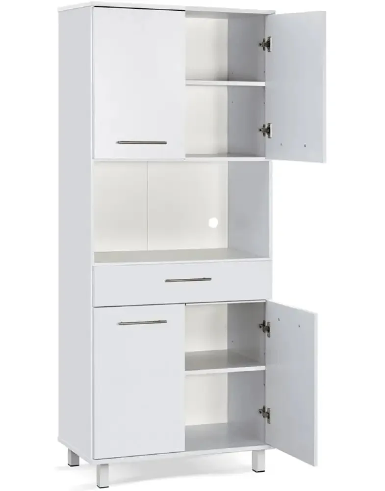 ארון מטבח למיקרוגל המעניק פתרון ארגון מקיף הכולל ארבע דלתות, מגירה נשלפת ונישה ייעודית למכשיר המיקרוגל. הארון מעוצב בקווים נקיים ומודרניים שמתאימים לכל חלל.