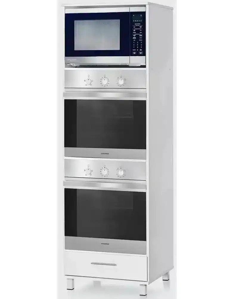 מפרט טכני: הארון כולל שני פתחים לתנורים, פתח ייעודי למיקרוגל ומגירת אחסון תחתונה לשימוש פונקציונלי.