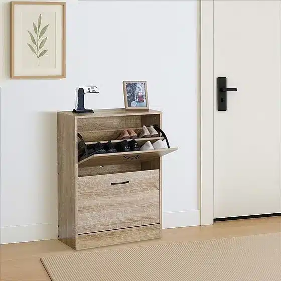 ארון נעליים קומפקטי 2 תאים זמין בגוון אלון טבעי חם המתאים למגוון רחב של סגנונות עיצוב: