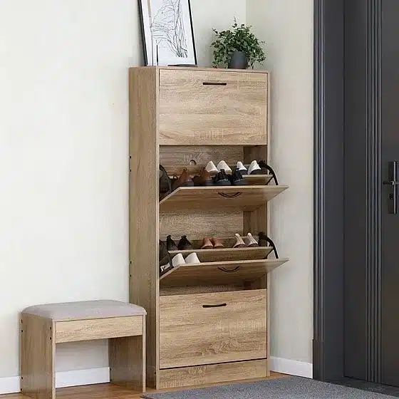 ארון נעליים 4 תאים בגוון אלון – פתרון אחסון חכם ומעוצב