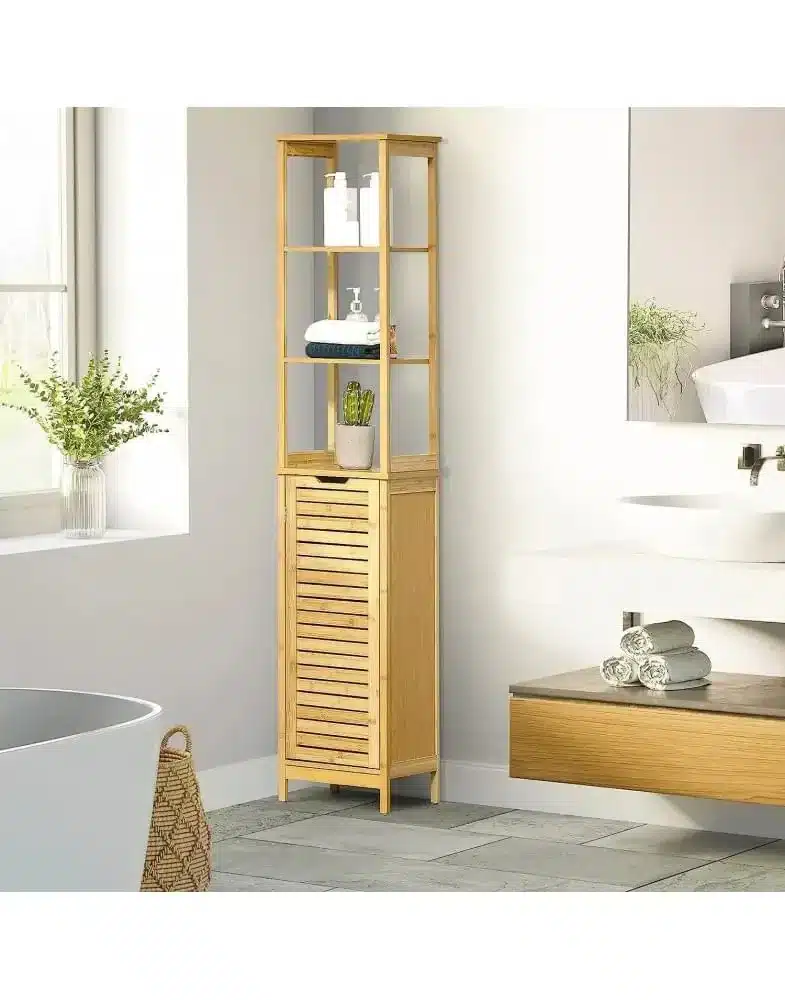 ארון שירות גבוה מבמבוק זמין בגוון טבעי המתאים לכל סגנון עיצוב מודרני: