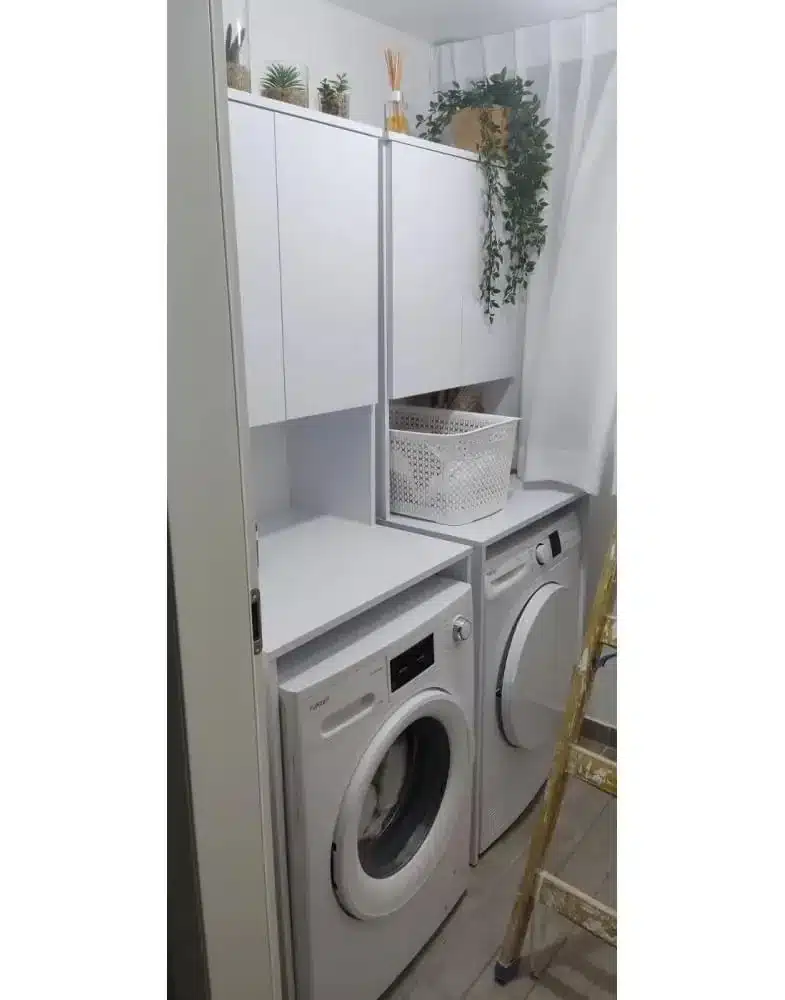 ארון שירות למכונת כביסה ומייבש – אחסון חכם מעל המכונה