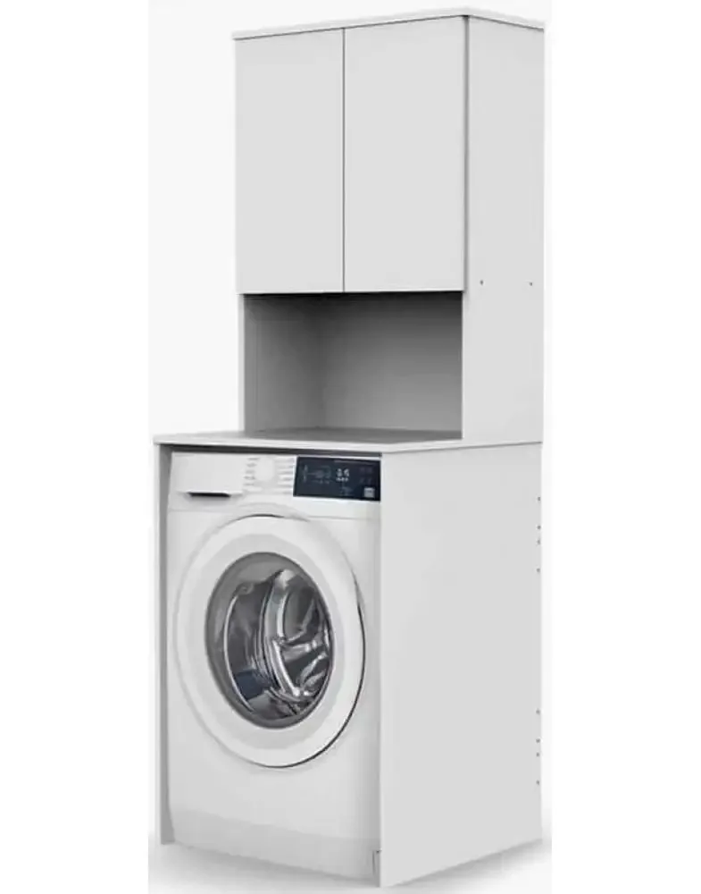 העיצוב המודרני והנקי של ארון השירות מאפשר לו להשתלב בקלות בכל פנים הבית. המבנה האנכי מנצל את הגובה שמעל מכונת הכביסה, שטח שלרוב נשאר ריק, והופך אותו לאזור אחסון נגיש ומאורגן. הגימור הלבן מעניק תחושת מרחב וניקיון בחללים שלעיתים נוטים להיות צפופים.