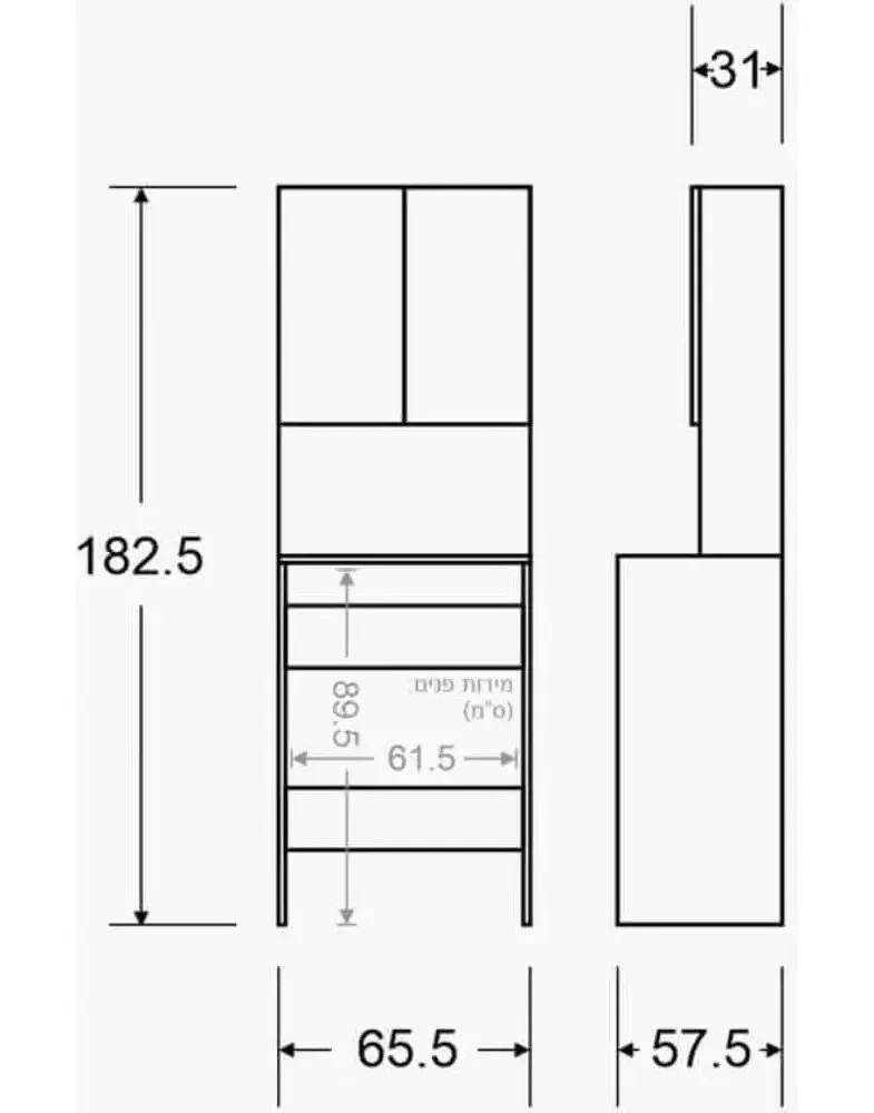 מידות חיצוניות: גובה 182.5 ס"מ | רוחב 65.5 ס"מ | עומק 57.5 ס"מ