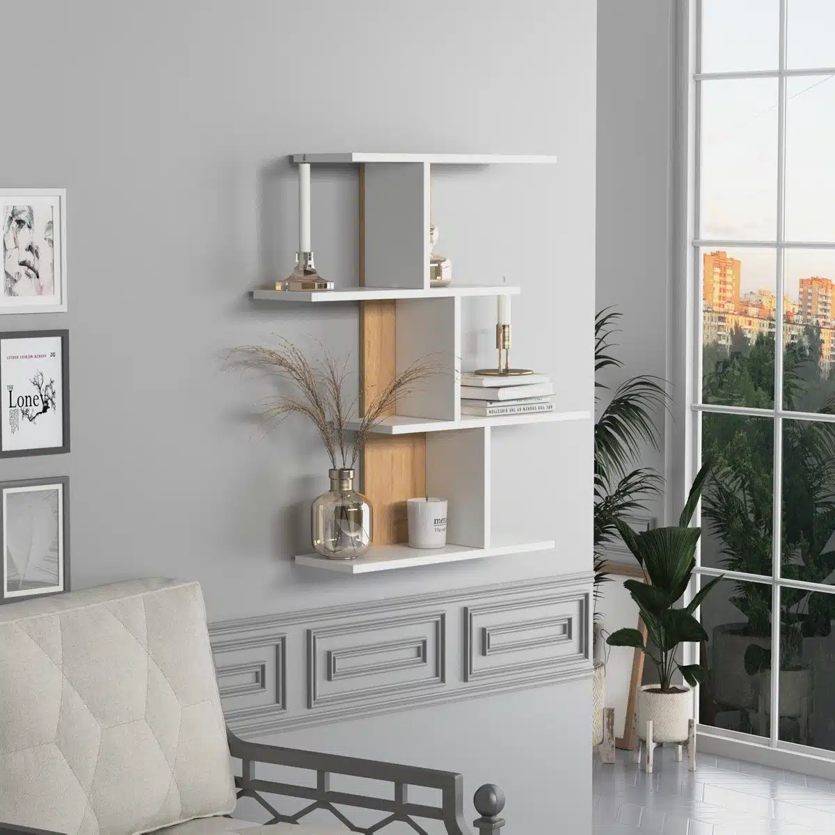 יחידת מדפים אסימטרית מעוצבת – פתרון תצוגה מודרני לעיצוב פנים יצירתי