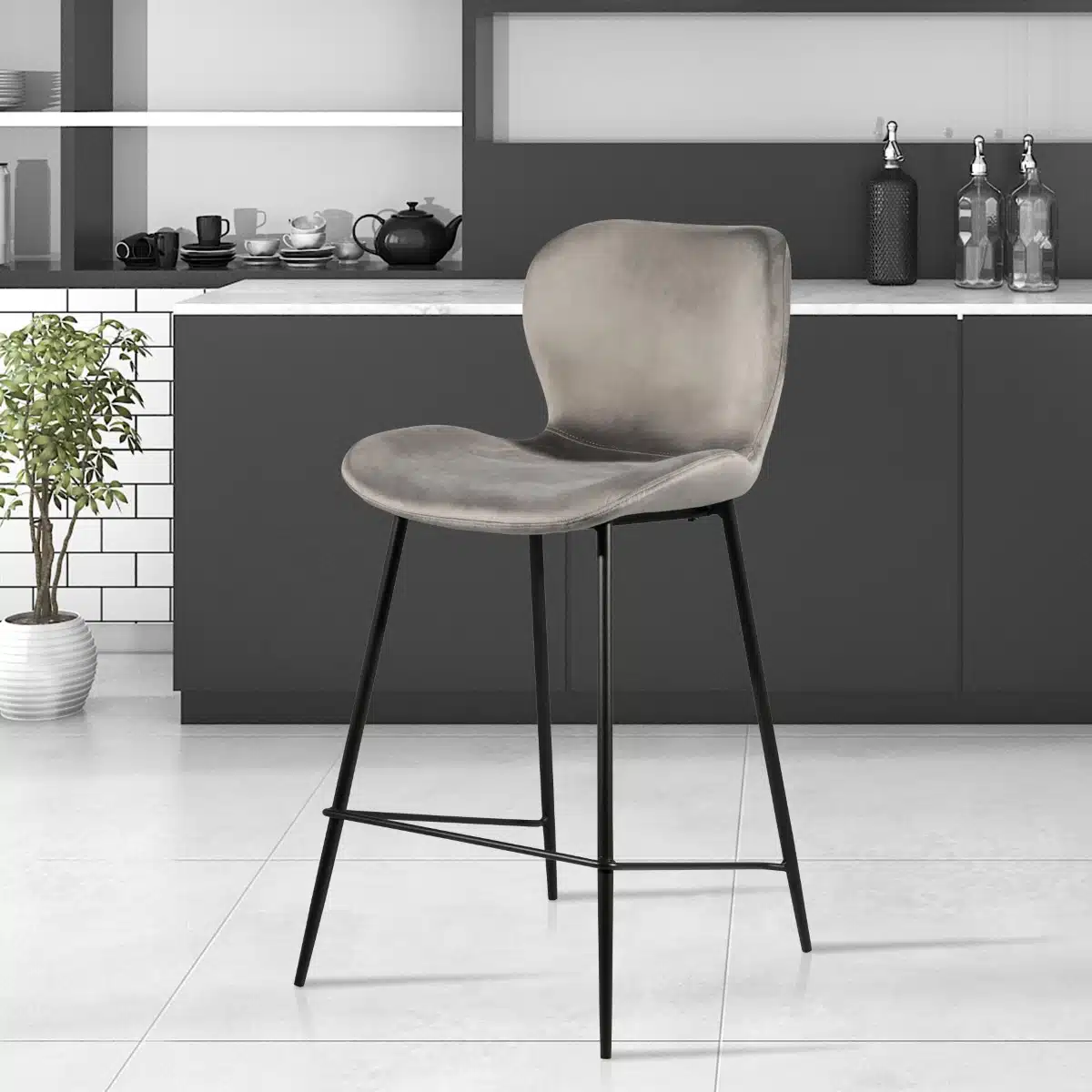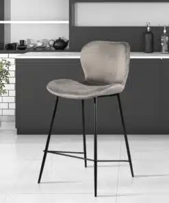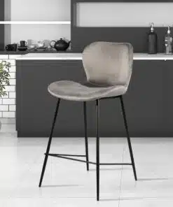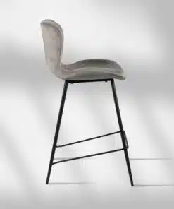 כסא בר בבד קטיפה אפור משובח . כסא אוכל מודרני – פרופיל מלוטש, קימורים חינניים, מרקם עשיר בסיס ורגלי המתכת השחורה משלבים היטה עם הבד האפור והעיצוב האופנתי של הכיסא שנוטה מעט לסגנון הרטרו מודרני הבד הקטיפה האיכותי רק ונעים למגע , דוחה כתמים וקל לניקוי עמיד בפני כתמים – כיסאו מושלמים לבר הביתי, לאי מטבח או לבר שולחן, כסא בר זה עשוי ממיטב חומרי הגלם: מסגרת הכיסאות עשויה מעץ מלא , ספוג עמיד ואורך חיים וכן תפירת בד הריפוד בתפירה מיוחדת על גוף הכיסא מוסיפה אלגנטיות לצד נוחות מרבית עם מושב מרופד היטב משענת רגליים פונקציונלית על מסגרת הכיסא. אם אם חיפשתם כסאות בר מרופדים ומעוצבים בבד קטיפה אפור יש לכם כאן בחירה מנצחת.