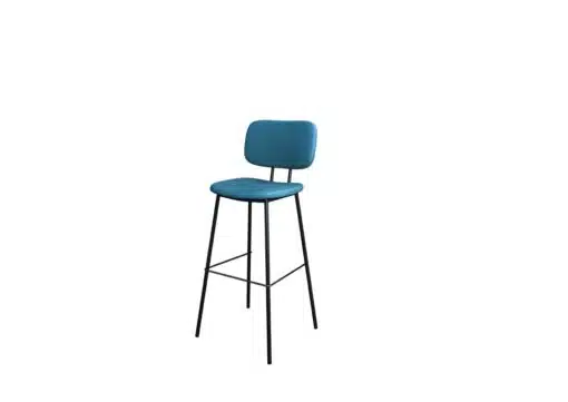 כסאות בר לאי במטבח בגובה מושב 72 ס"מ. מרופדים היטב בספוג איכותי ועמיד ודמוי עור בצבע טורקיז תכלת, מסגרת הכסאות עשוי מתכת אל חלד בצבע שחור