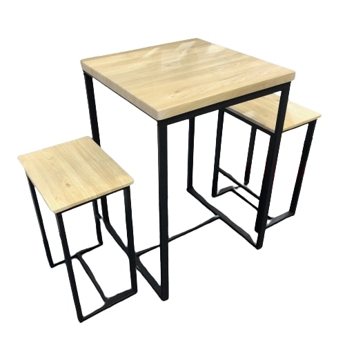 שולחן בר עם כסאות מתכת משולב עץ