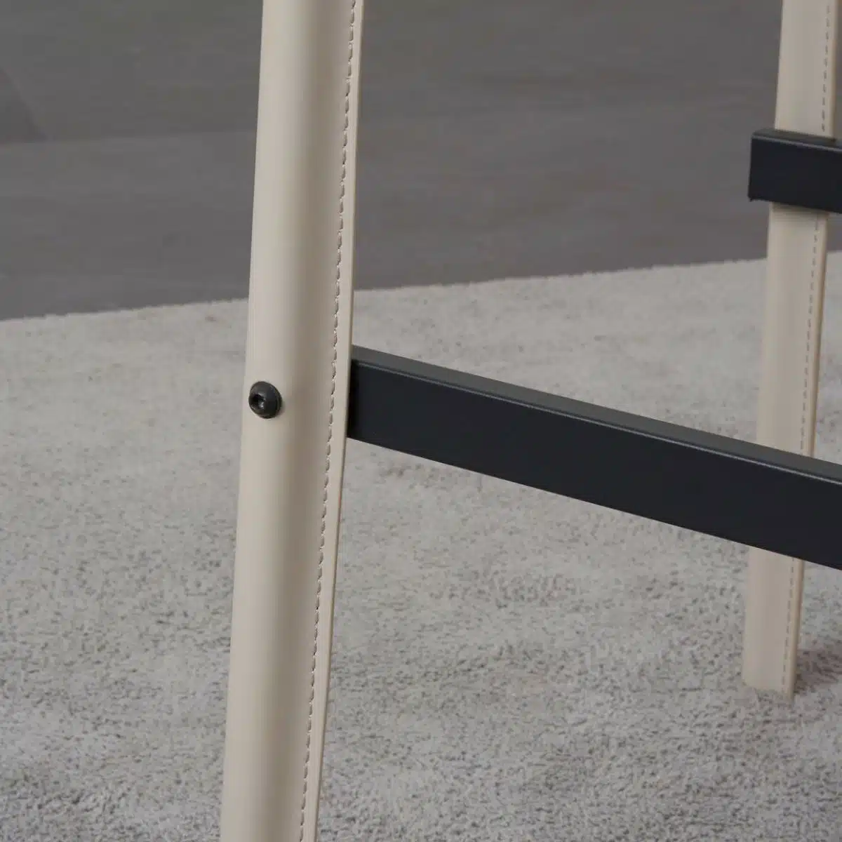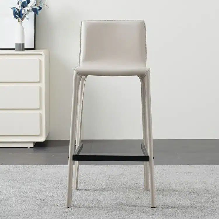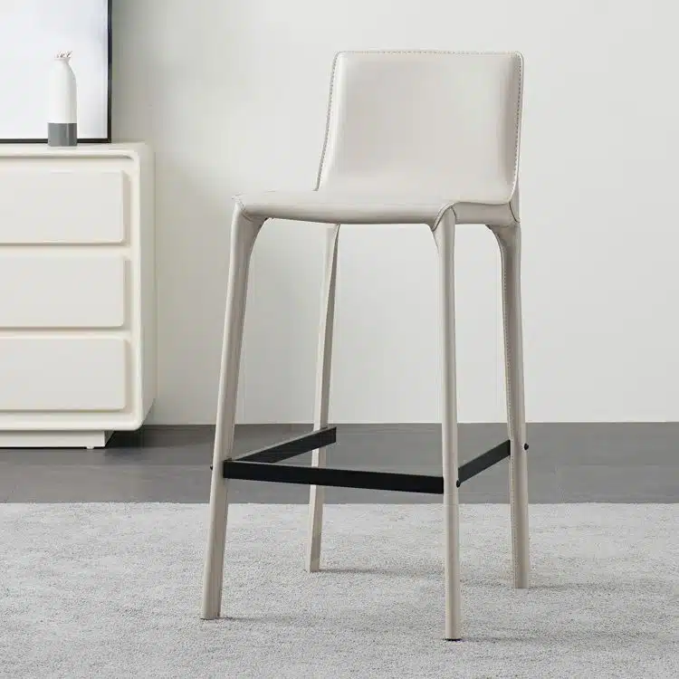 כסא בר בצבע בז' מרופד דמוי עור בעיצוב יוקרתי