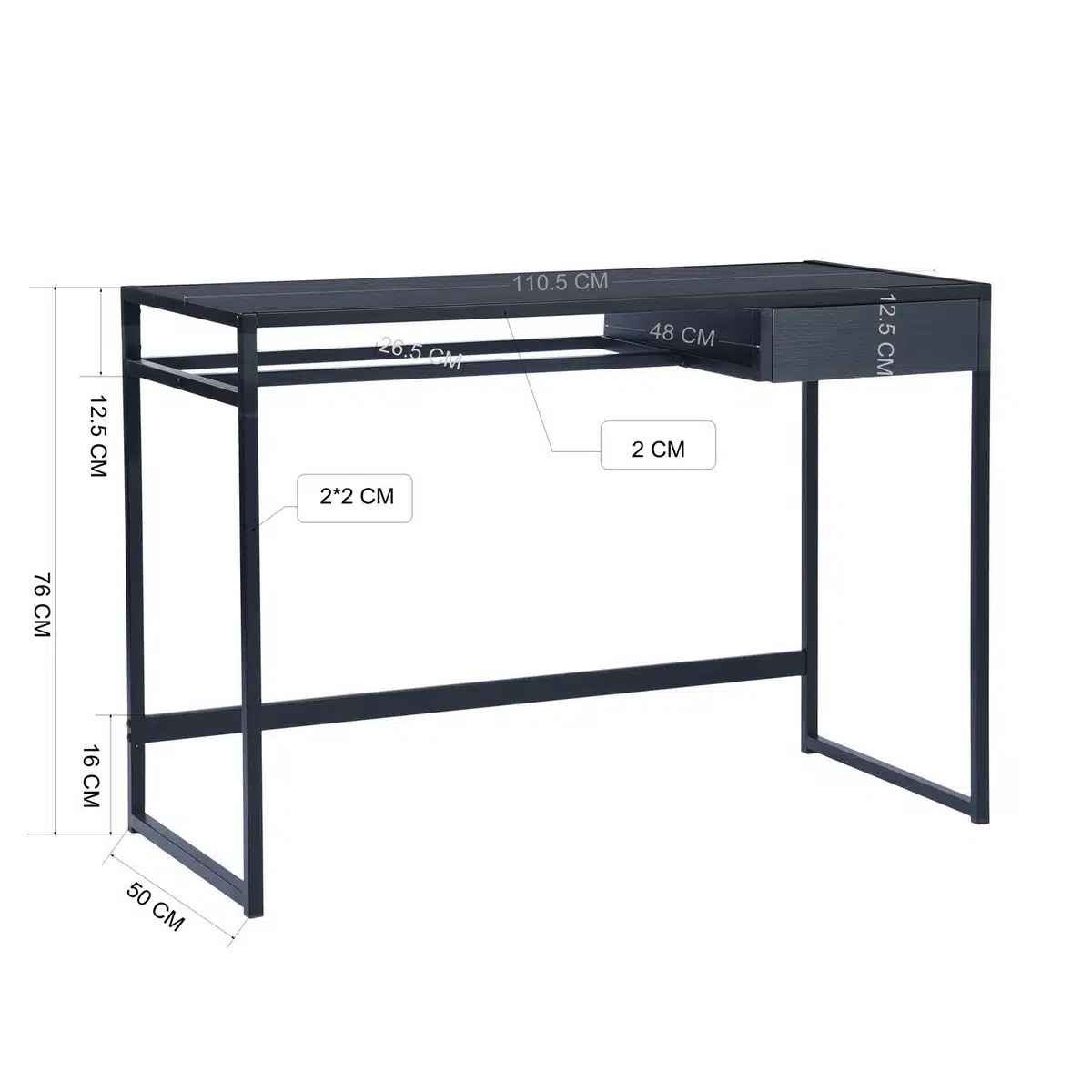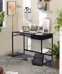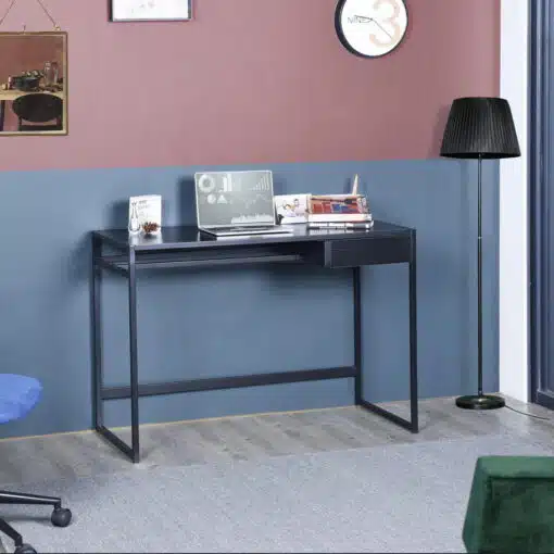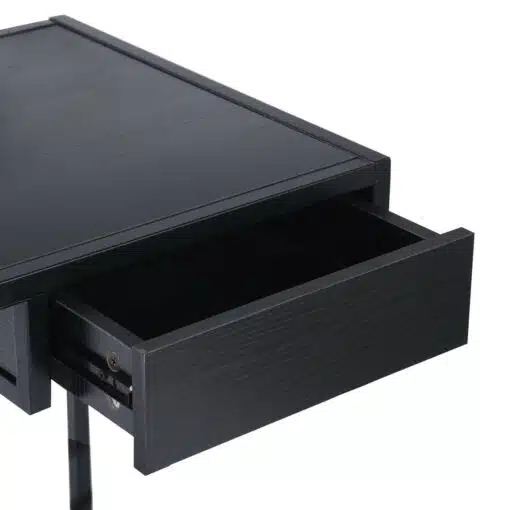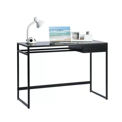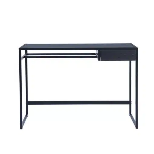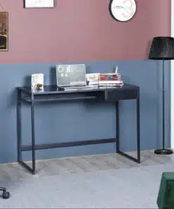שולחן כתיבה בעיצוב קלאסי וקווים ישרים בצבע שחור , השולחן עשוי מעץ מתועש עם חיפוי מלמין בגימור מושלם ומסגרת מתכת אל חלד חזקה ויציבה בצבע שחור