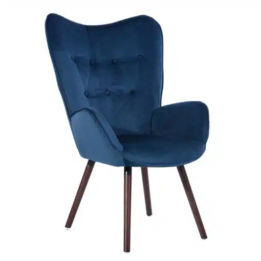 כורסא מעוצבת לסלון בבד כחול איכותי עמיד וקל לניקוי. כורסא זו עשויה מחומריים משובחים ואיכותיים : ספוג בצפיפות גובה ומערכת קפיצים שתבטיח לך נוחות ועמידות מרבית , מסגרת הכורסא עשויה מתכת ועץ מלא.