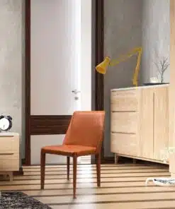 - דמוי עור איכותי: הכסאות מרופדים בדמוי עור איכותי ביותר בגוון חום קאמל עשיר, המעניק מראה יוקרתי ואלגנטי.