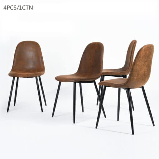כסאות לפינת אוכל בדמוי עור איכותי בצבע חום כאמל. הכסאות מרופדים היטב בספוג איכותי ועמיד בצפיפות גבוה . רגלי הכסא עשויות מתכת אל חלד בצבע שחור.