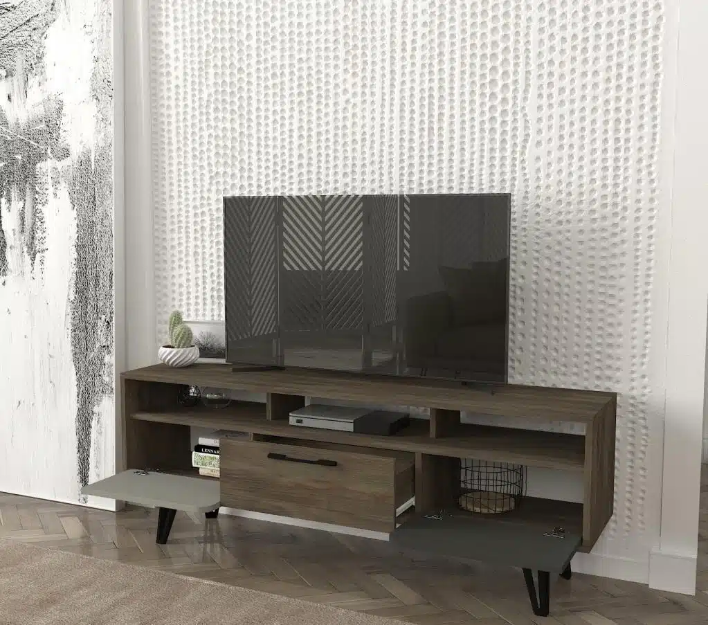 המזנון הכפרי שלנו הוא הבחירה המושלמת עבורכם! עיצובו האקלקטי והחמים, בשילוב עם שלושה תאי אחסון ושלושה מדפים פתוחים, הופכים אותו לתוספת פרקטית ומרשימה לכל חלל.