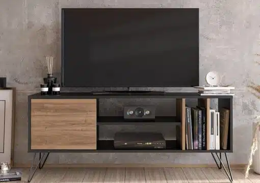 מחפשים מזנון טלוויזיה מעוצב בגוון עץ משולב עם שחור לסלון או לחדר הישיבה , זה מזנון מצוין עבורכם.