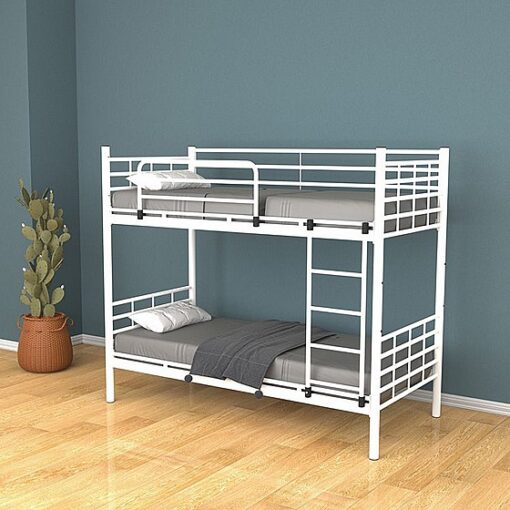 מיטת קומתיים ממתכת בעיצוב קלאסי וקווים ישרים עשויה ממתכת אל חלד חזקה ויציבה בצבע לבן