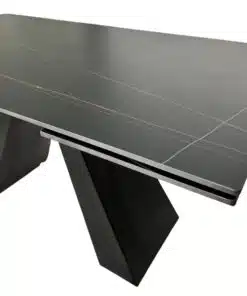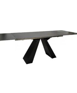 שולחן אוכל עשוי מקרמיקה איכותית ומסגרת מתכת אל חלד בגוון שחור בצביעה אלקטרוסטטית איכותית. השולחן נפתח באמצעות מנגנון משיכה איכותי וקל בשניות אחדות.