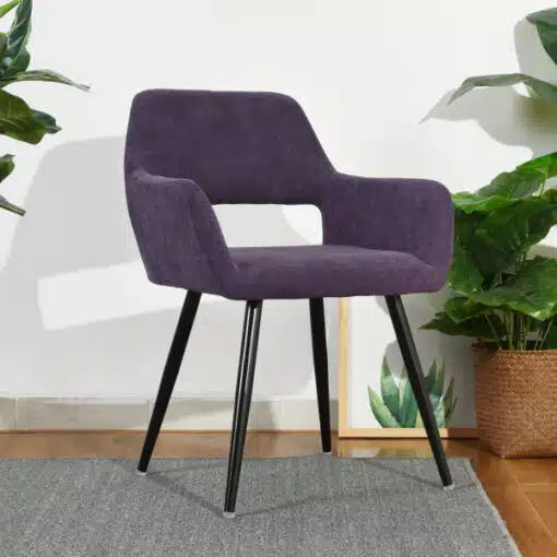 כסאות מעוצבים בצבע סגול -מרופדים היטב בספוג איכותי ועמיד , בד דוחה כתמים וקל לניקוי , מסגרת הכסאות עשויה ממתכת אל חלד בצבע שחור.