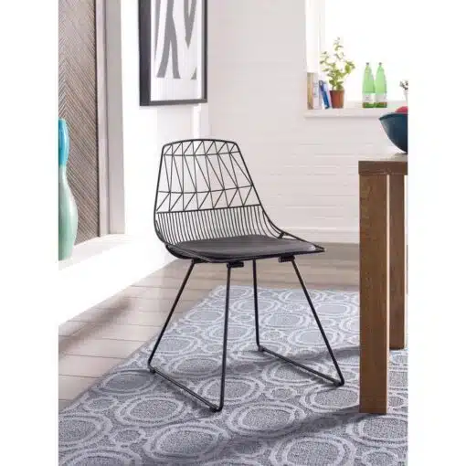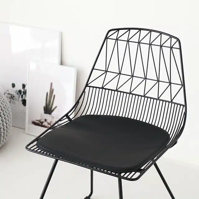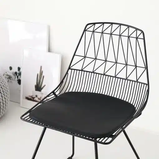 כסאות מעוצבים ממתכת שחורה בעיצוב רטרו מתאימים ככיסאות פינת אוכל , כיסאות המתנה למשרד או ככיסא מעוצב לחדר שינה. הכיסא עשוי ממתכת אל חלד מגיע אם כריות בבד שחור. הכסאות מעוצבים ויקנו לחלל הפינת אוכל המשרד או החדר שינה שיק עיצובי ומראה רענן.