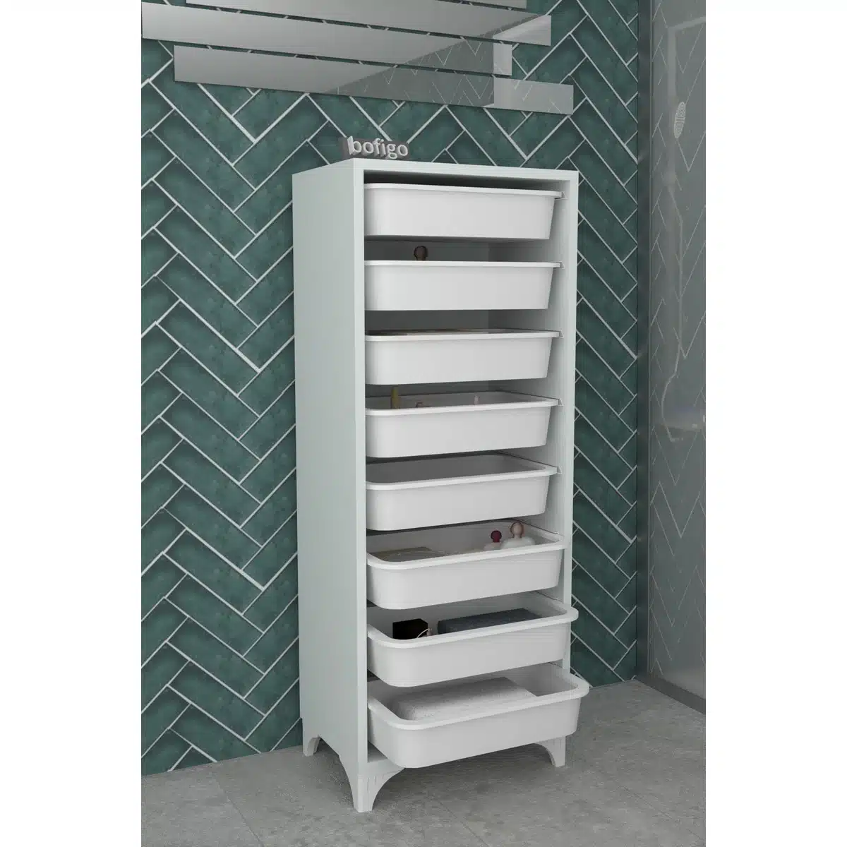 שידת מגירות למטבח BR25 – פתרון אחסון גבוה עם 8 מגירות פלסטיק
