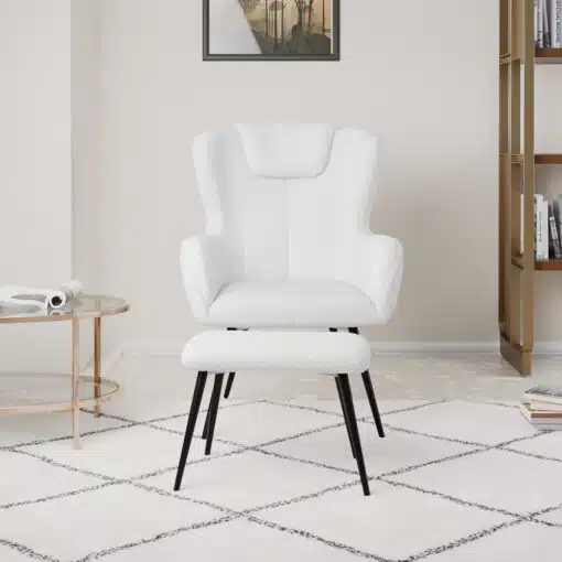 כורסת מעוצבת עם משענת גב גבוהה והדום