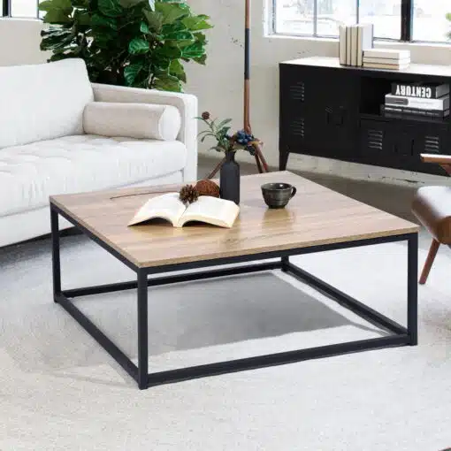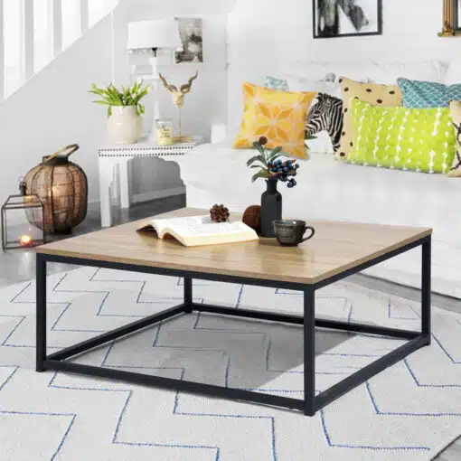 שולחן סלון מתכת וגוון עץ