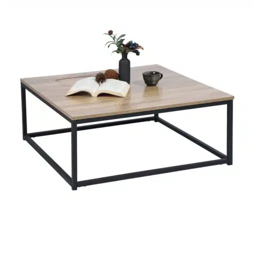 שולחן סלון משולב מתכת וגוון עץ עשוי מ- MDF עם חיפוי מלמין איכותי ועמיד מסגרת השולחן עשויה ממתכת אל חלד בצבע שחור .