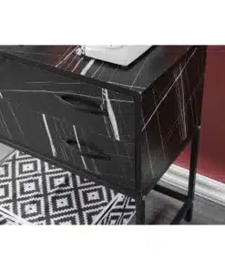 הקונסולה מיוצרת משבבית עץ דחוסה איכותית מצופה הדפס שיש יוקרתי המבטיח שימוש ממושך לאורך שנים. משטח ההדפס קל לניקוי ועמיד בפני שריטות, לכלוך וכתמים – מה שהופך אותו לאידיאלי לשימוש יומיומי בכניסה לבית. המסגרת ממתכת שחורה איכותית מעניקה יציבות מלאה ומראה תעשייתי מודרני. הידיות השחורות עשויות ממתכת ומעניקות אחיזה נוחה. המגירות מצוידות במסילות החלקה חלקות המאפשרות פתיחה וסגירה נוחות. הרגליים הגבוהות מתכת מספקות יציבות מלאה ותחושה קלה ואווירירית.