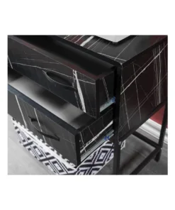 עיצוב יוקרתי: שילוב מרהיב של שיש שחור עם גידים זהובים ומתכת שחורה יוצר מראה אלגנטי ומודרני. 2 מגירות על מסילות איכותיות לאחסון.